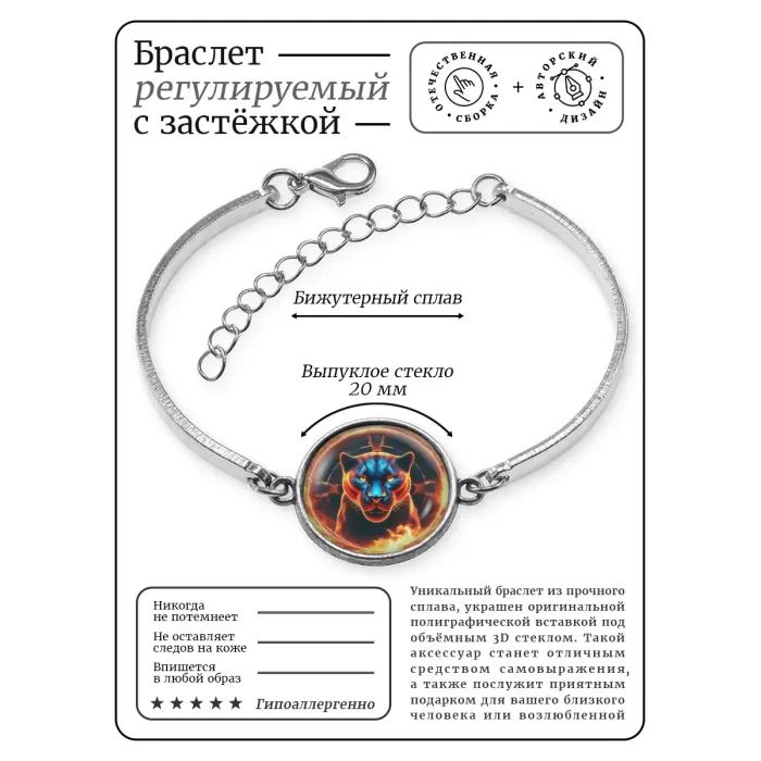 Размеры и комплектация: Регулируемая застёжка. Упаковка: прозрачный пакет.