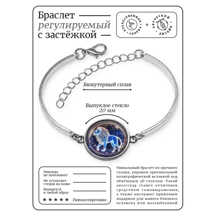Браслет металлический Звездный лев BSI-0110