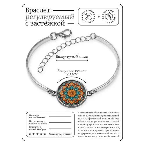 Размеры и комплектация: Регулируемая застёжка. Упаковка: прозрачный пакет.