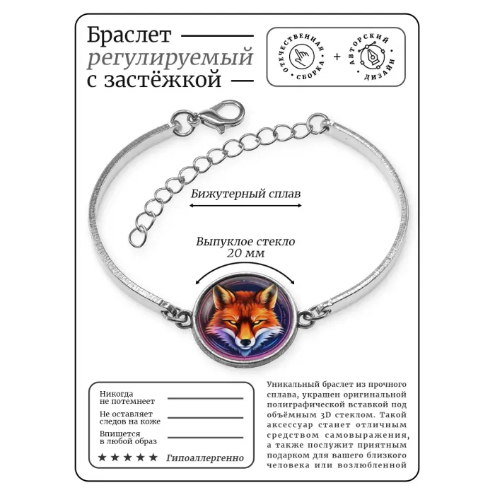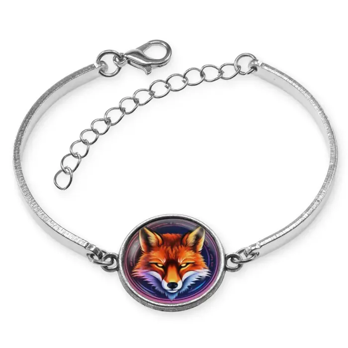 Металлический браслет с декоративным элементом в виде лисы.