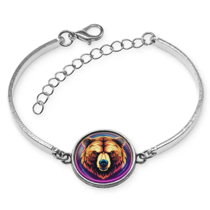 Браслет из бижутерного сплава с декоративным элементом «Медведь» под стеклянной линзой.