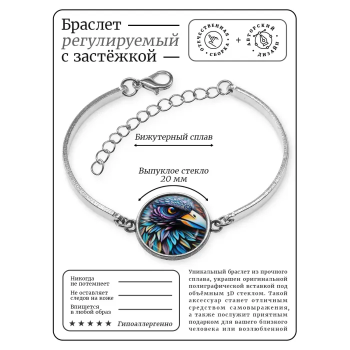 Браслет металлический Цветной ворон BSI-0186