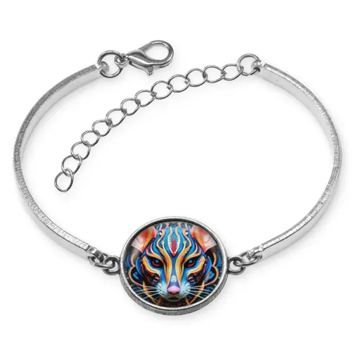Металлический браслет с изображением мыши. Изображение защищено выпуклой стеклянной линзой.