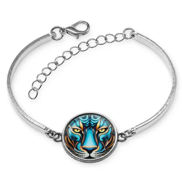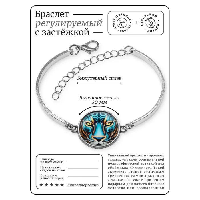 Браслет из бижутерного сплава с декоративным элементом «Красочная пантера» и регулируемой застёжкой.