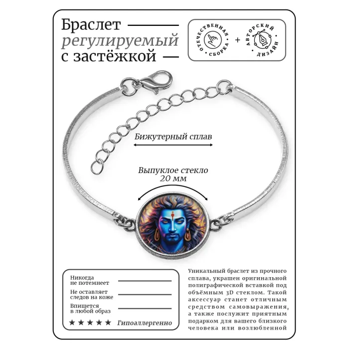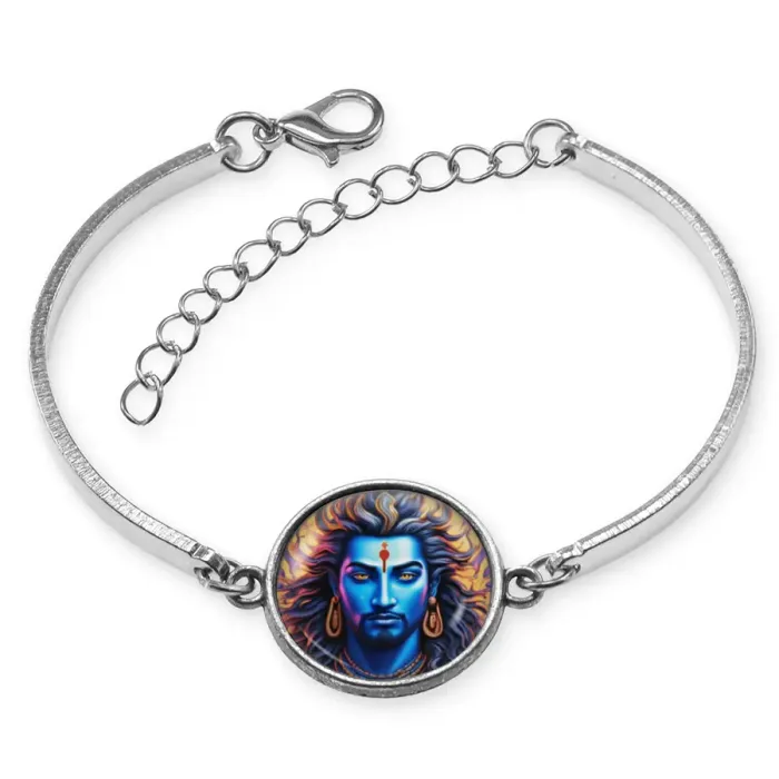 Металлический браслет с изображением Шивы под стеклянной линзой.