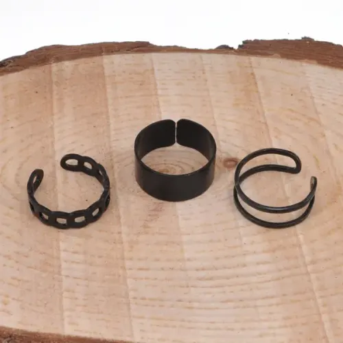 Набор из 3 безразмерных колец, цвет черный KLN063