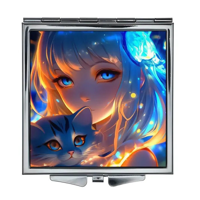 Складное зеркало квадратное Девушка с котенком ZER2-0895