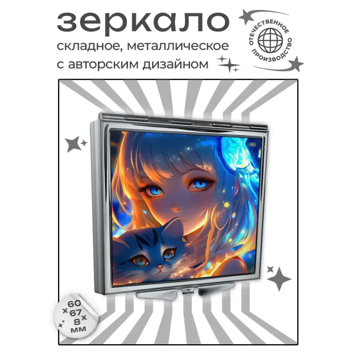 Складное зеркало квадратной формы с полноцветным изображением на металле.