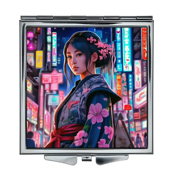 Складное зеркало квадратное Девушка в кимоно в городе ZER2-0896