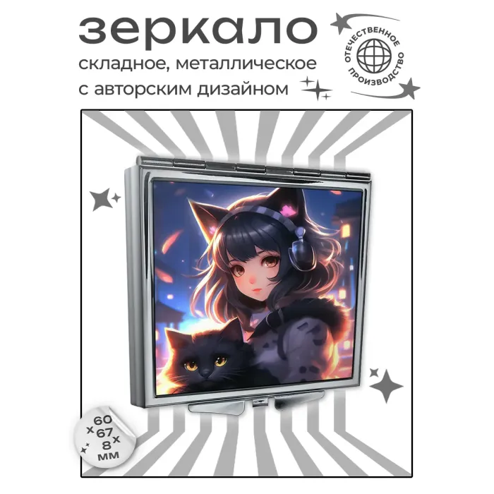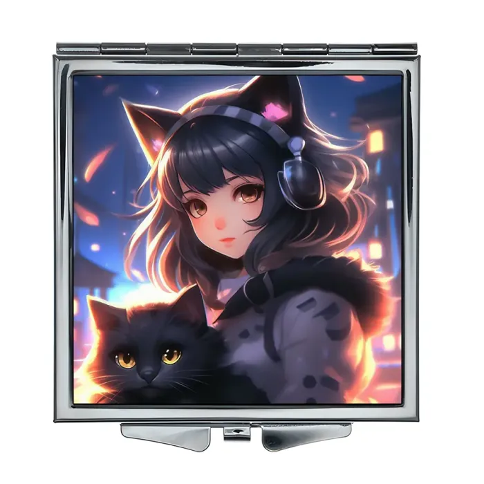 Складное зеркало квадратное Девушка неко ZER2-0897