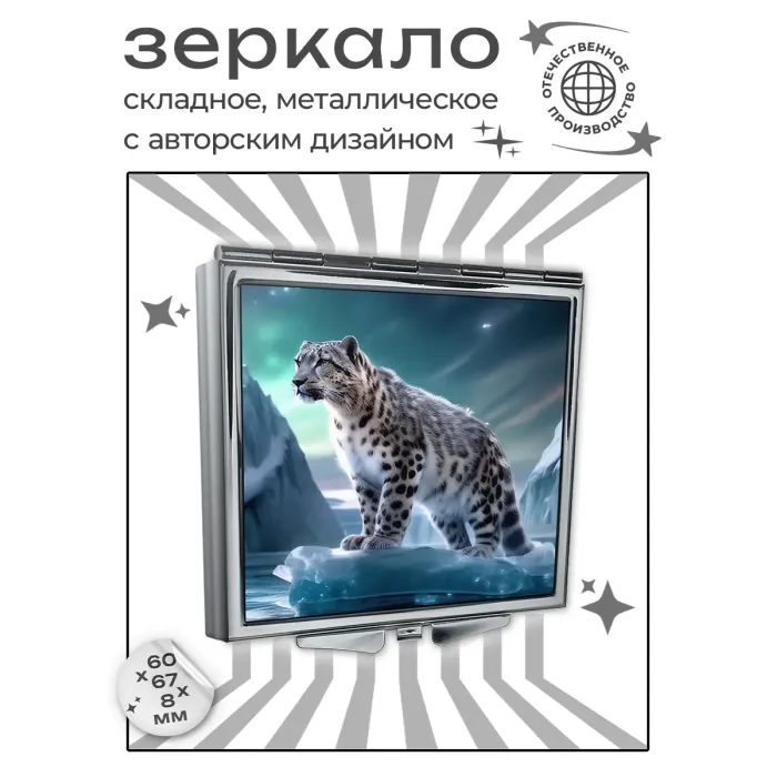 Складное зеркало квадратной формы с изображением дикой кошки.