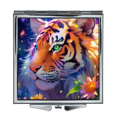 Складное зеркало квадратное Тигр и цветы ZER2-0937