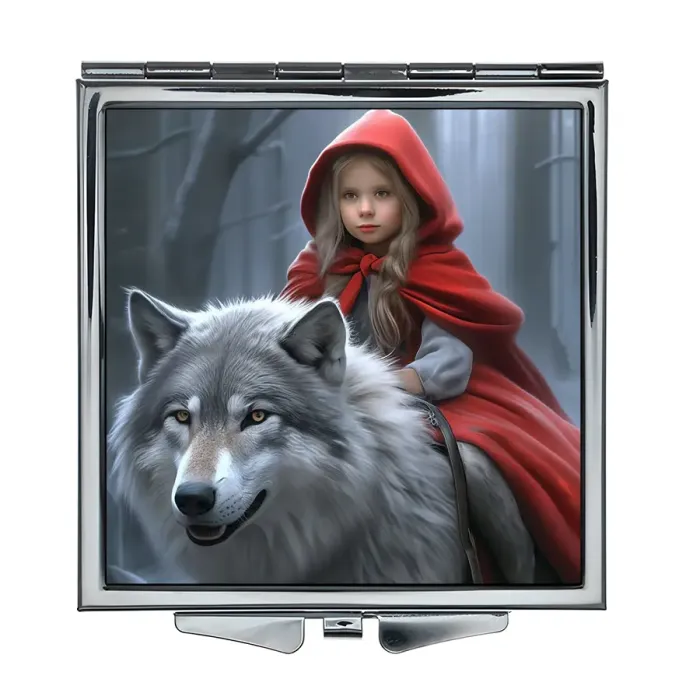 Складное зеркало квадратное Волк и Красная Шапочка ZER2-0940