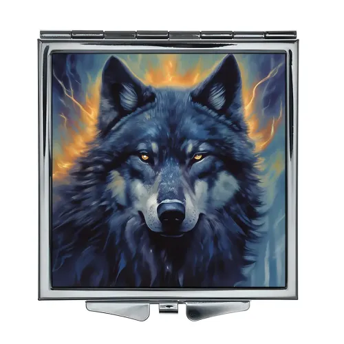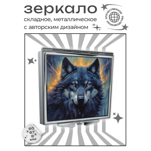 Складное квадратное зеркало с изображением волка. Материал: металл и стекло.