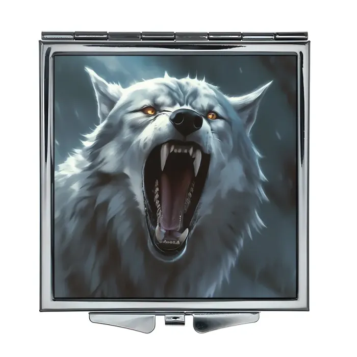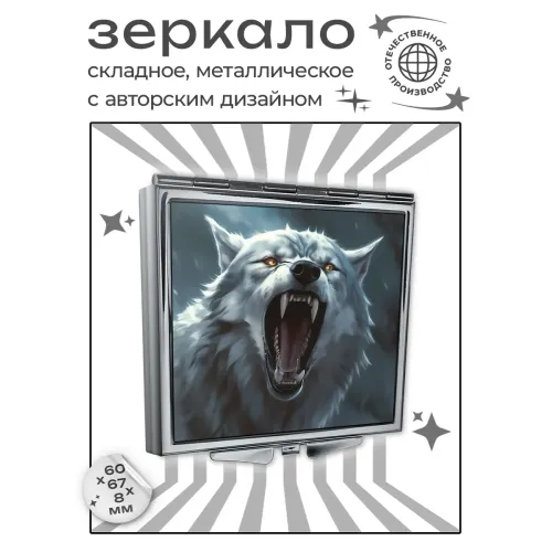 Складное зеркало квадратной формы с полноцветным изображением белого волка.