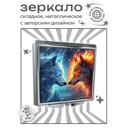 Складное зеркало квадратное Волки лед и пламя ZER2-0972