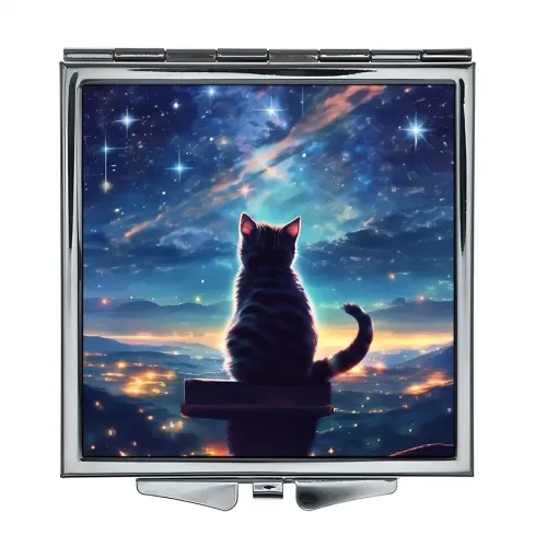 Складное зеркало квадратное Кот созерцание ZER2-0974