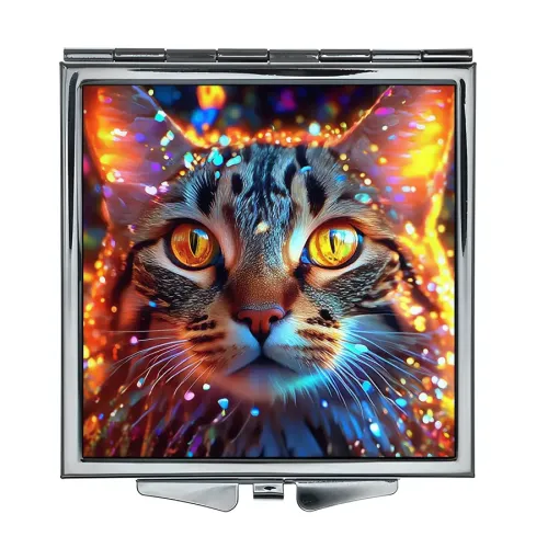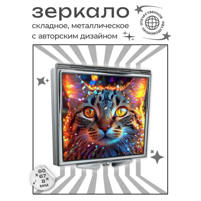 Складное зеркало квадратное Кошка сияние ZER2-0976