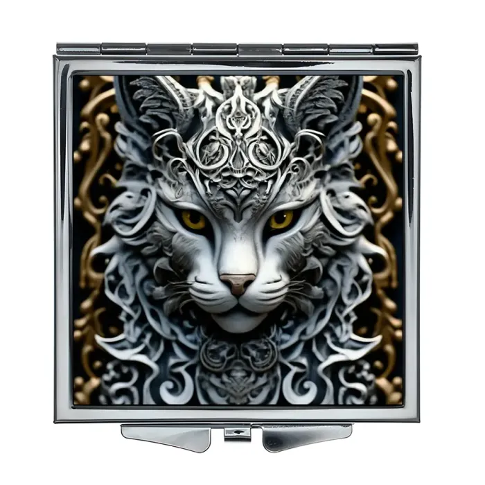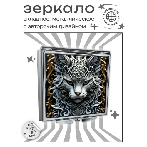 Складное квадратное зеркало с полноцветным изображением узорного кота.