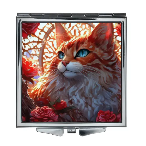 Складное зеркало квадратное Кошка и цветы ZER2-0983
