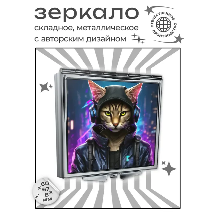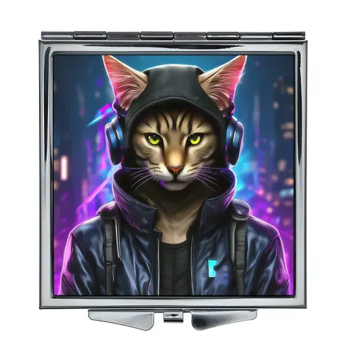 Складное зеркало квадратное Кот киберпанк ZER2-0993