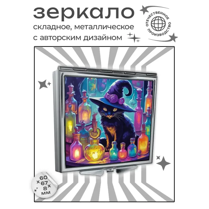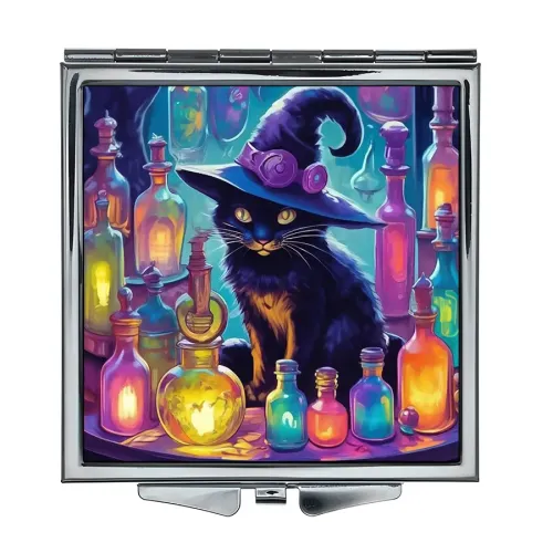 Складное зеркало квадратное Кошка чародейка ZER2-1009