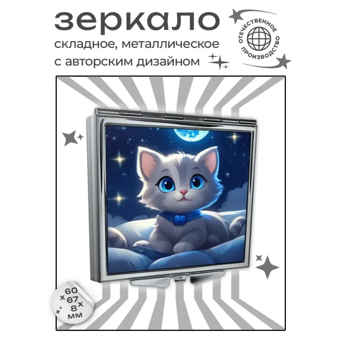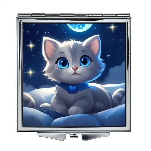 Складное зеркало квадратной формы с изображением «Юная кошка» для личного использования.