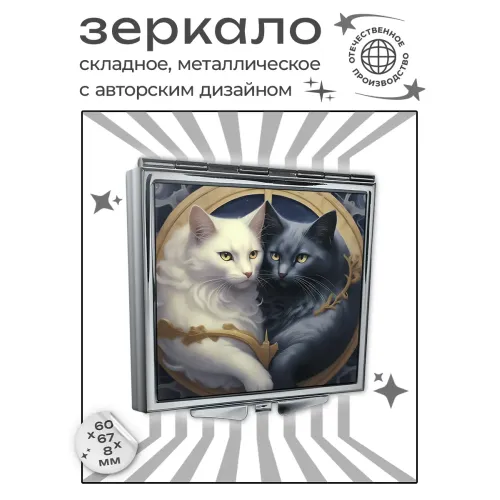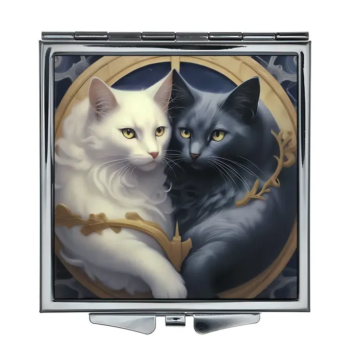 Складное зеркало квадратной формы с изображением котов в стиле Инь-Ян.