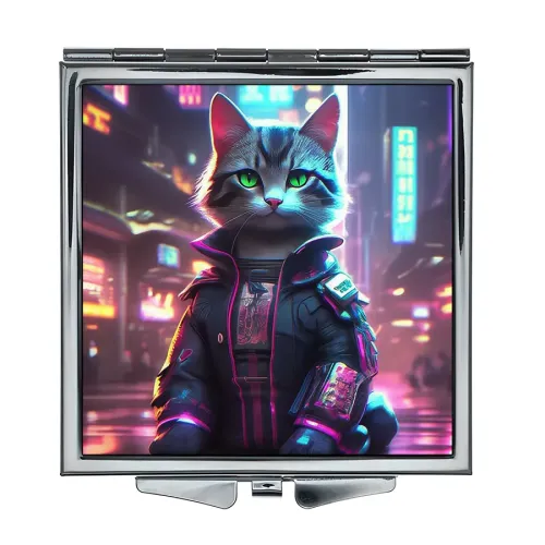 Складное зеркало квадратное Кошка киберпанк ZER2-1031