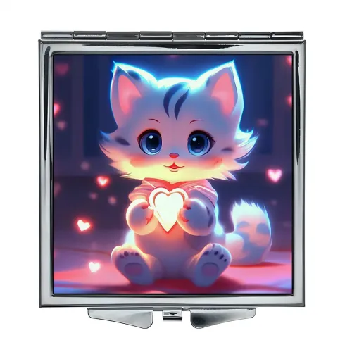 Складное зеркало квадратное Кошка с сердцем ZER2-1032