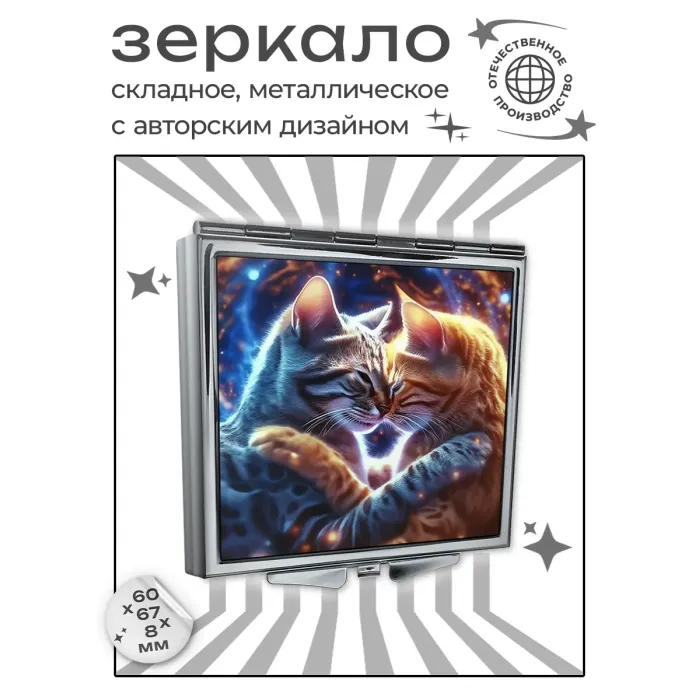 Складное зеркало квадратное Влюбленные кошки ZER2-1046