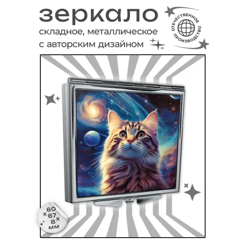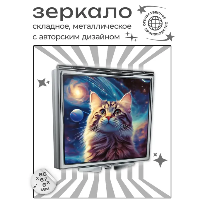 Складное зеркало квадратное Кот вселенная ZER2-1055