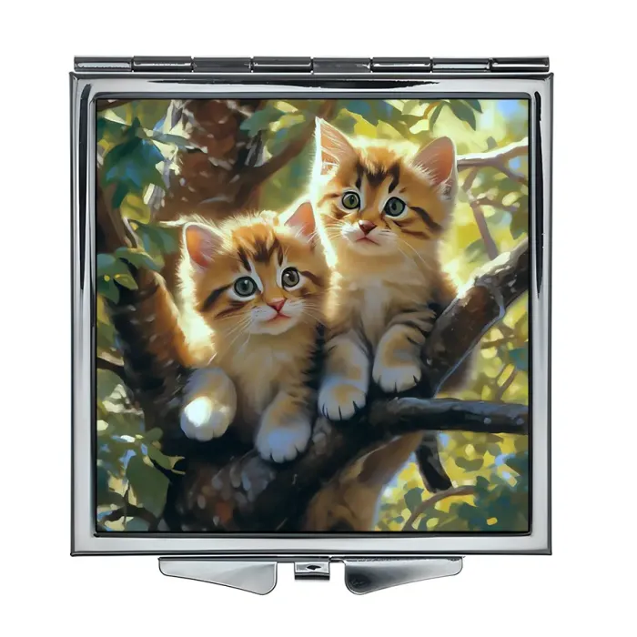Складное зеркало квадратное Котята на дереве ZER2-1066