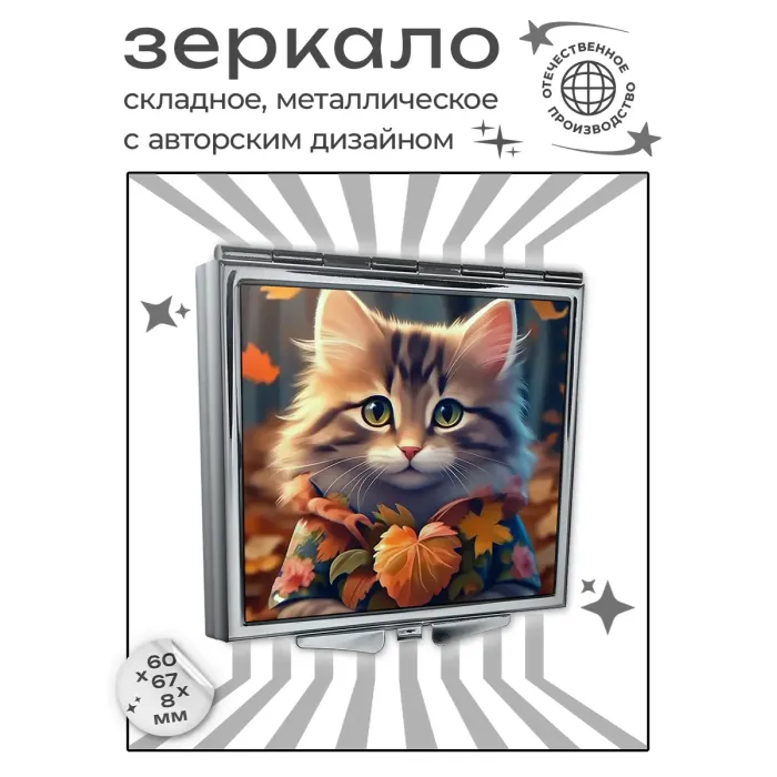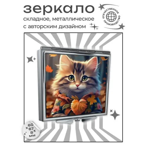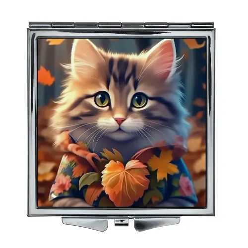 Складное зеркало квадратное Котенок осень ZER2-1076