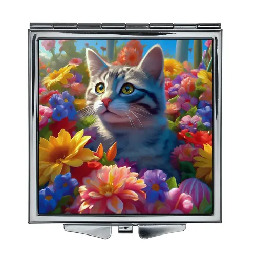 Складное зеркало квадратное Кошка в цветах ZER2-1080