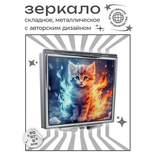 Складное зеркало квадратной формы с изображением котёнка в стиле «лёд и пламя».