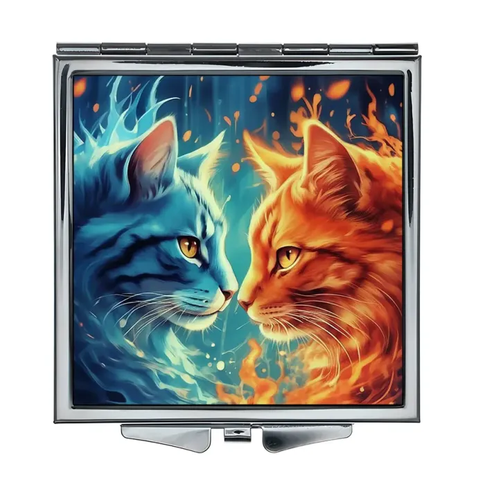 Складное зеркало квадратное Кот и кошка ZER2-1098