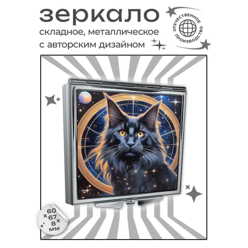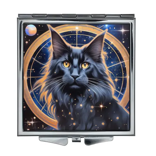 Складное квадратное зеркало с полноцветным изображением астрологического мейн-куна.