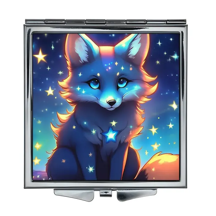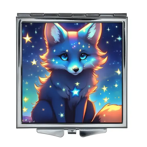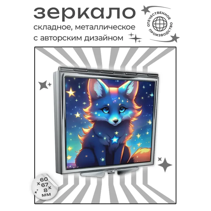Складное квадратное зеркало с полноцветным изображением лисы.