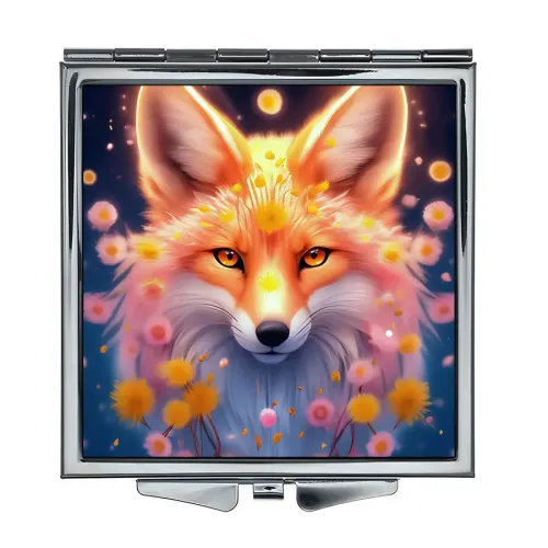 Складное зеркало квадратное Лиса и цветы ZER2-1121