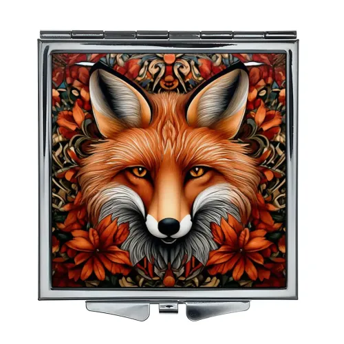 Складное зеркало квадратное Лиса рисунок ZER2-1123