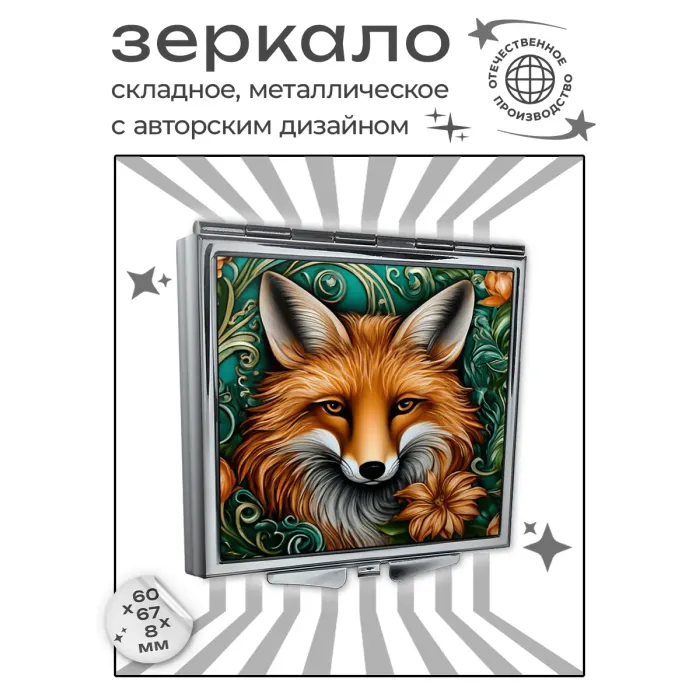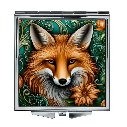 Складное зеркало квадратной формы с изображением лисы в стиле сюрреализма.