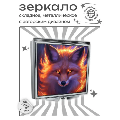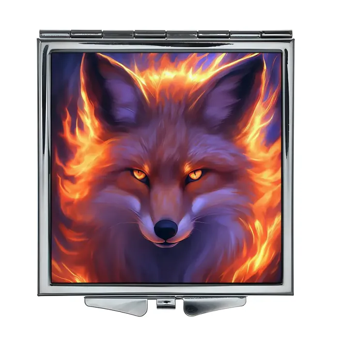 Складное зеркало квадратной формы с изображением Огненного лиса.
