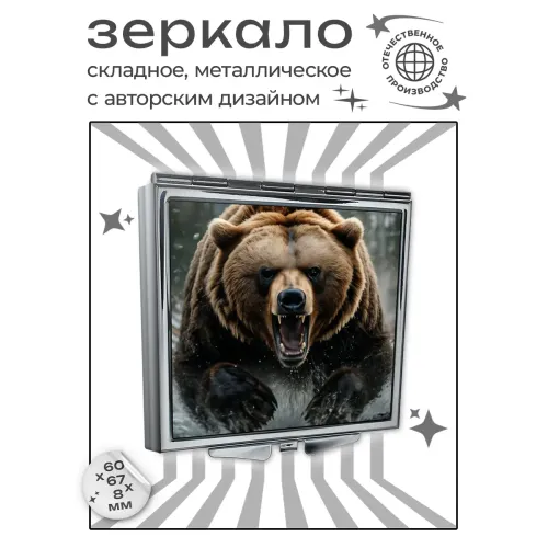 Складное зеркало квадратное Ярость медведя ZER2-1160