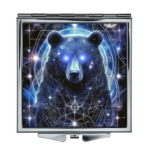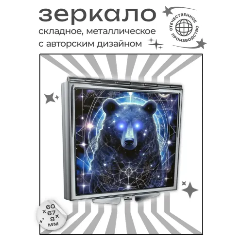 Складное зеркало квадратной формы из металла и стекла с полноцветным изображением Астрологического медведя.