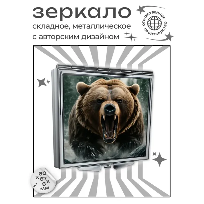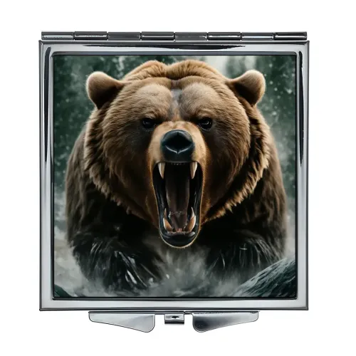 Складное зеркало квадратное Рык медведя ZER2-1166
