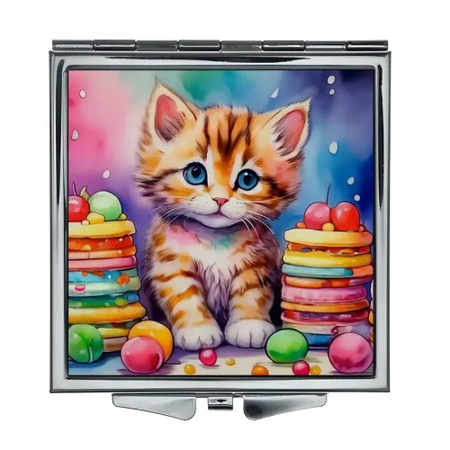 Складное зеркало квадратное Кот и панкейки ZER2-1180