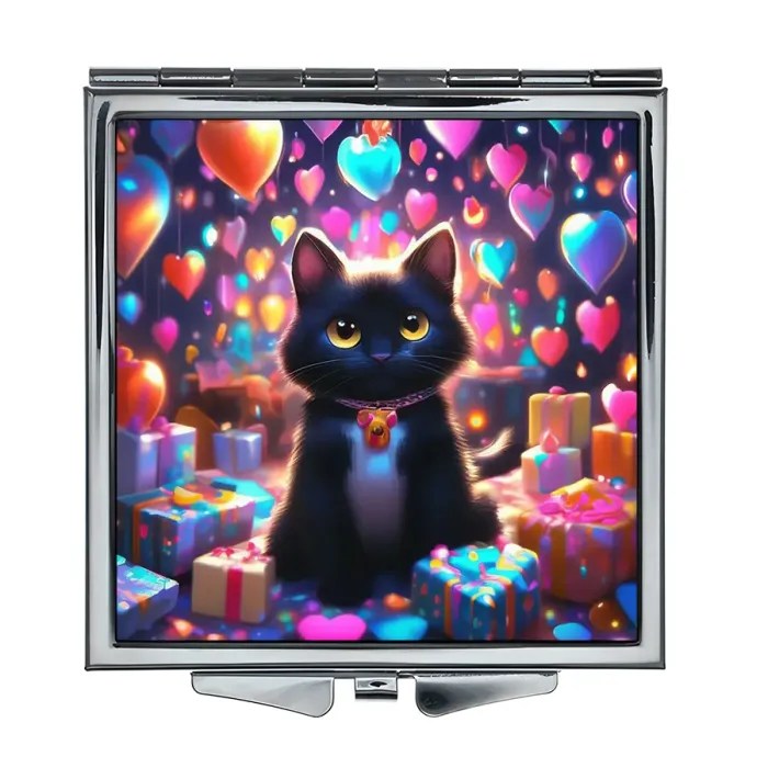 Складное зеркало квадратное Кот праздник ZER2-1181