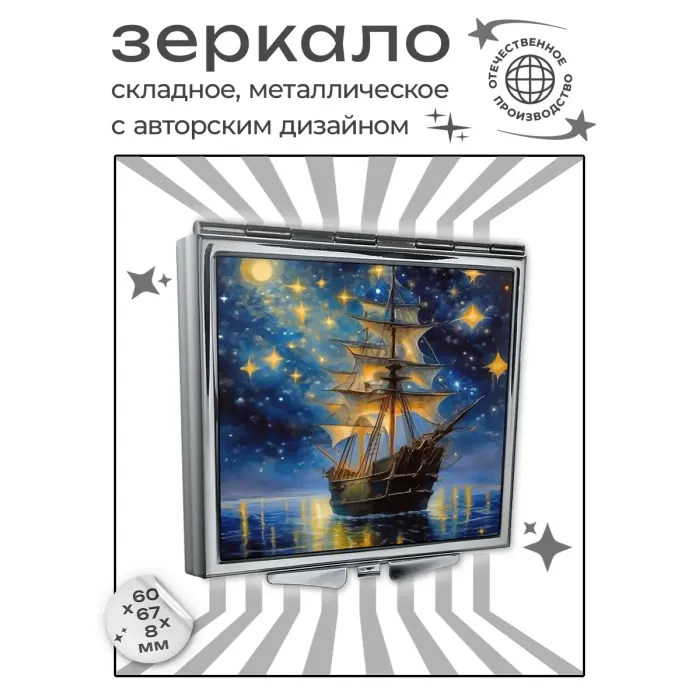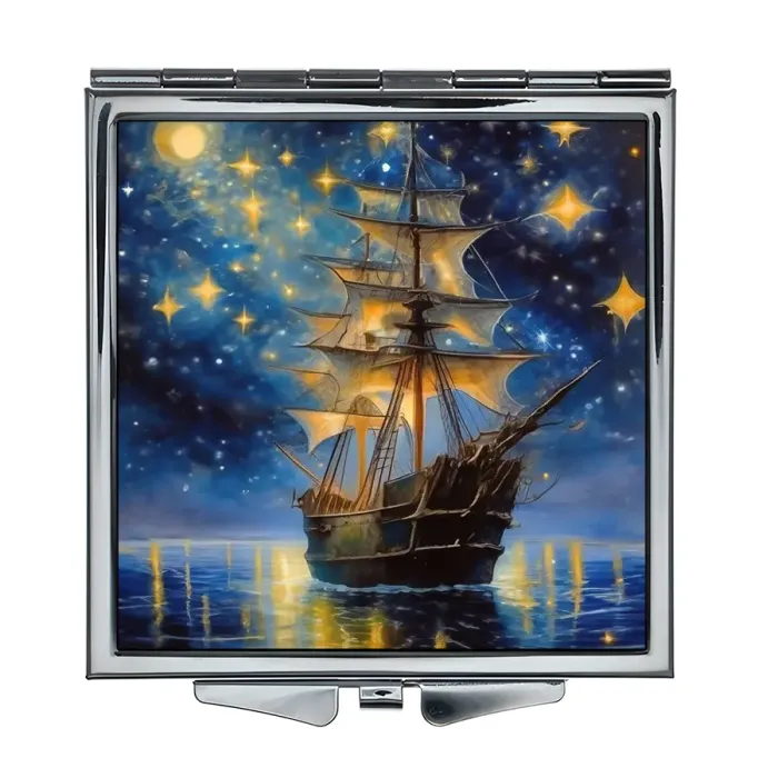 Складное зеркало квадратной формы с изображением «Ночной парусник».