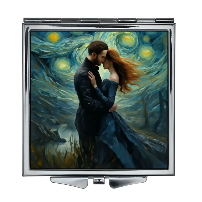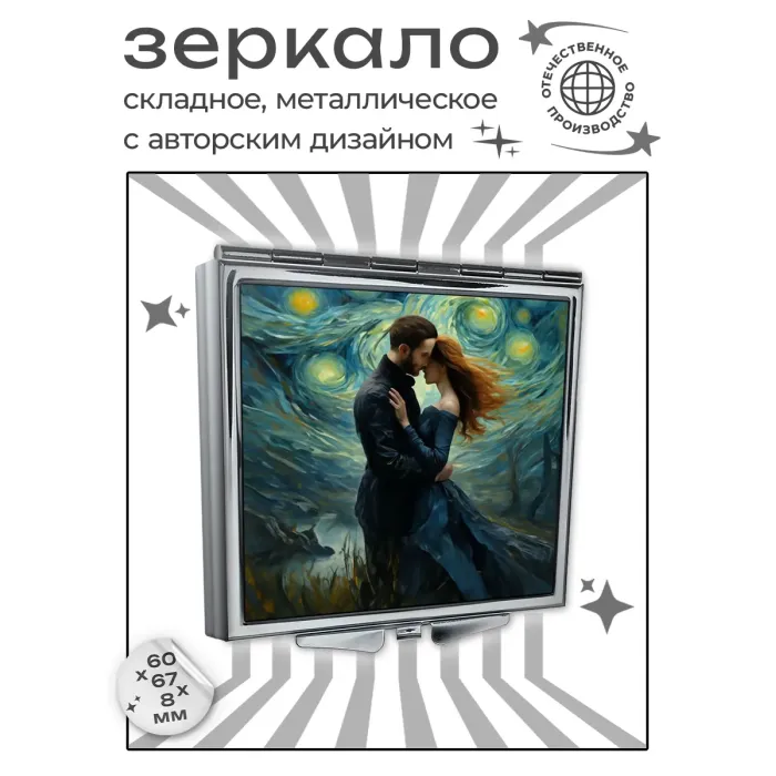 Складное квадратное зеркало с полноцветным изображением «Влюблённые. Звёздная ночь».